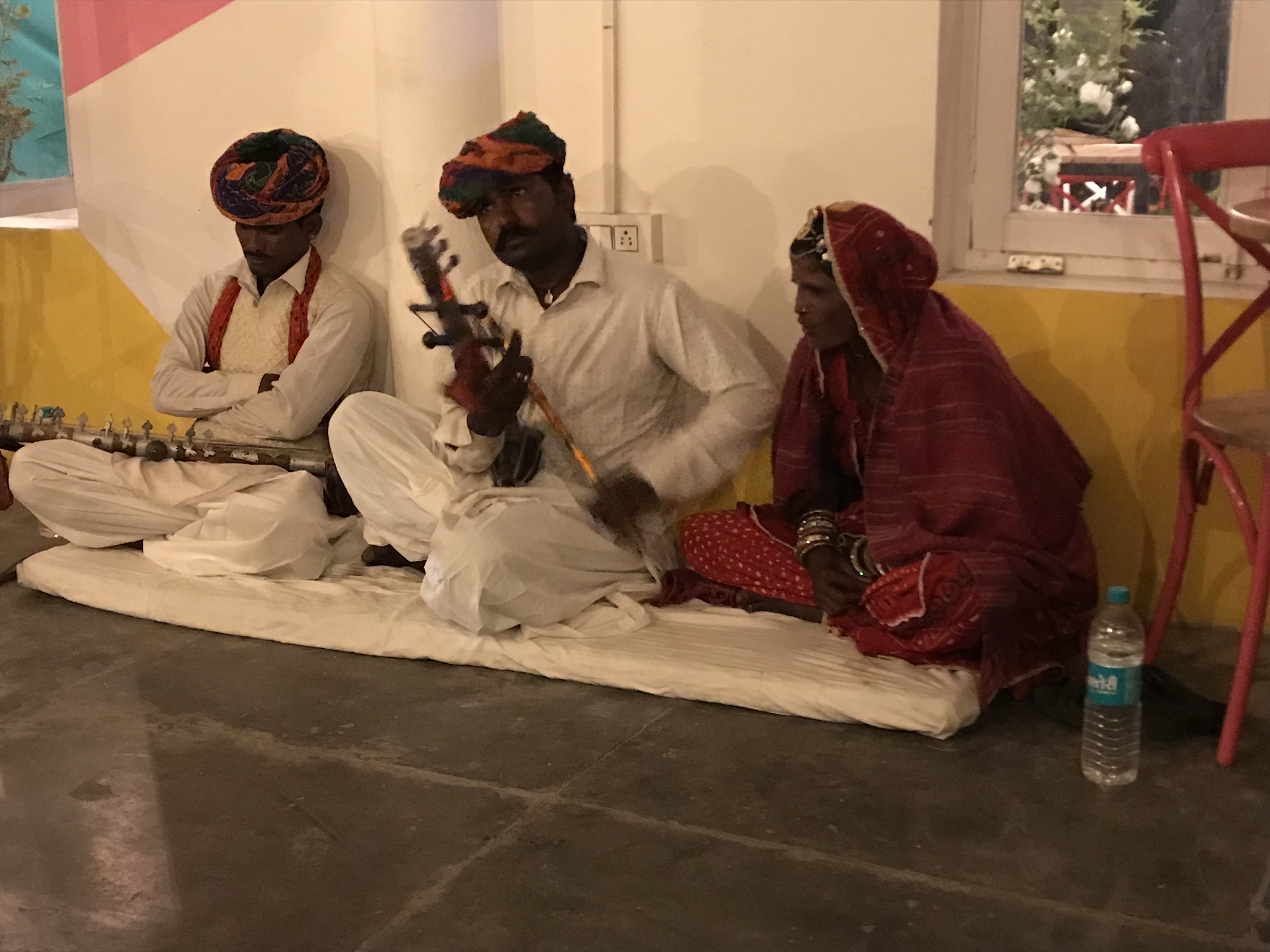 The hostel we stayed at had regular musical evenings having either a guy playing a guitar (beautifully) or a band playing sufi music, or a couple singing and playing traditional music from the Rajasthan area. Most of the time the guitar playing carried on in the common room afterwards. I was delighted to see Andy have a go at playing it as well, this is how relaxed we are starting to feel.