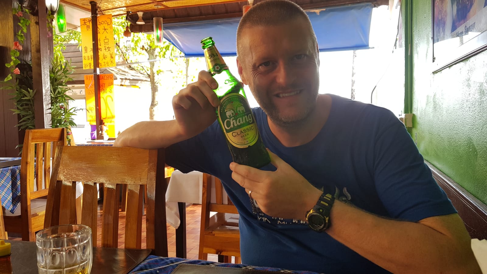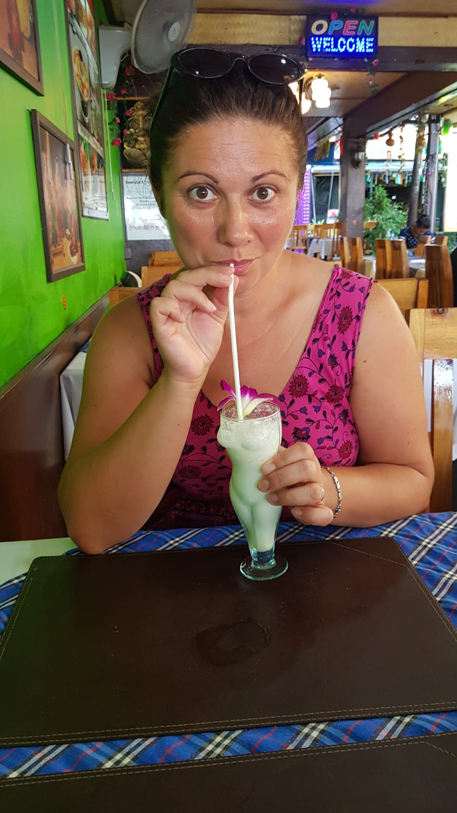 On our first day here in Thailand we thought we’d go and explore the local town, so we went and asked our gracious hosts if they would be kind enough to drop us in town. We were given the managers phone number and asked to call when we needed picking up. One of our tasks for the day was to get a Thai SIM card/number so we could have internet usage on the go via our phones. It’s something we had in India, and it makes life so much easier. So, we had our first glimpses of Ao Nang Beach, our first Thai meal and of course our first Thai beer/cocktail!