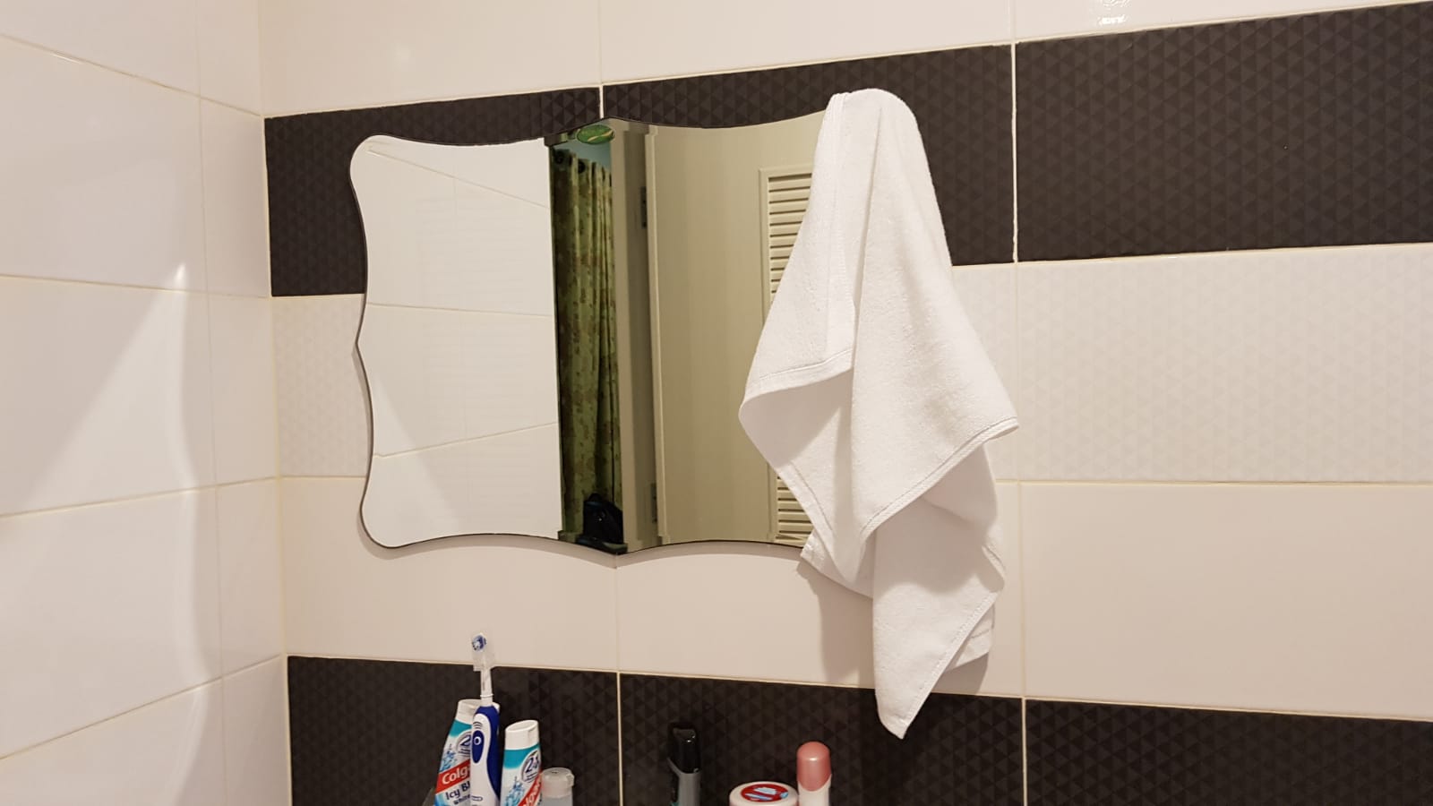 We had to hang the hand towel on the corner of the bathroom mirror as again, there is nowhere else to put it.