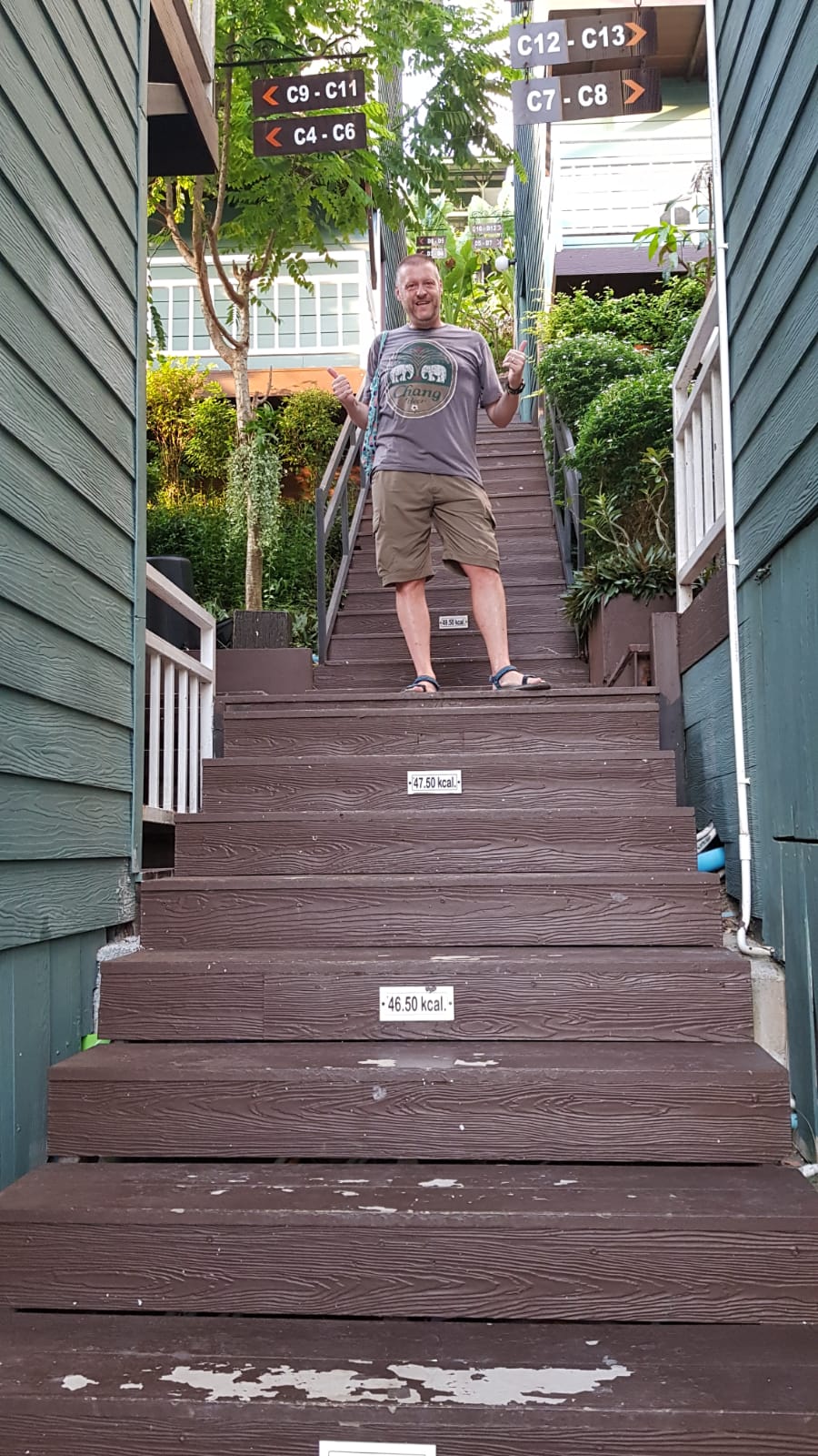 The small streets were like a maze and we felt sure we would never find the hotel ever again. At the end of the path we were faced with a daunting set of stairs leading up to the hotel. So, we grabbed our bags and started to scale the dizzy heights. Put it this way, the steps even have signs on them to show how many calories you’re burning as you ascend!
