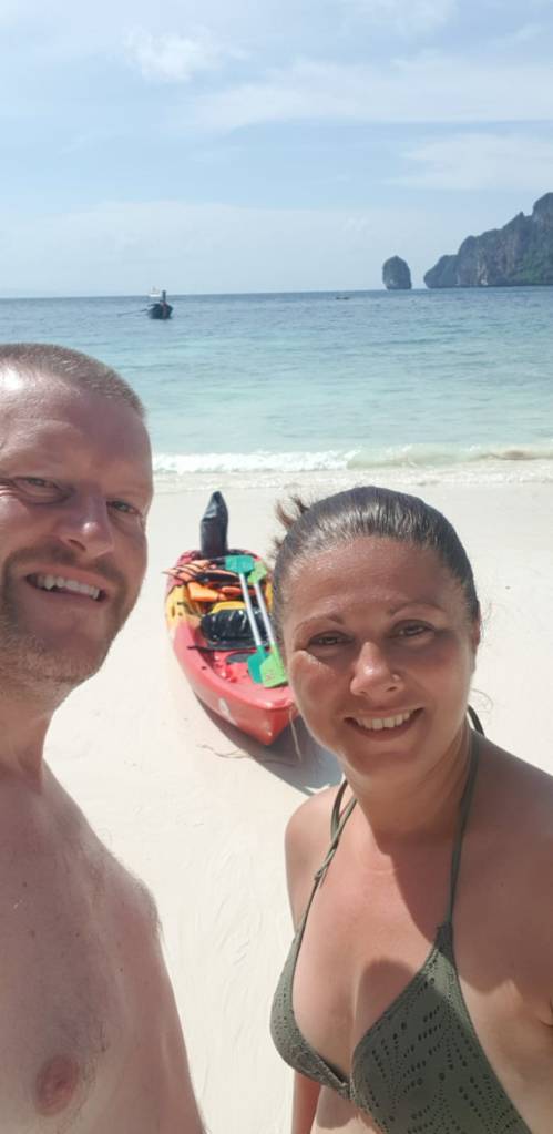 After a considerable lie-in, we started the next day with our second kayak experience after the success of the first one in Ao Nang beach. Unfortunately for us we chose completely the wrong time to do it this time as the tide was out. That said, we’d walked down to the beach and didn’t fancy the dreaded steps back up to the hotel just yet, so we went for it. We had to drag the damn thing across the sand for about 5 miles before we got into the shallows where it would float and make it slightly easier.