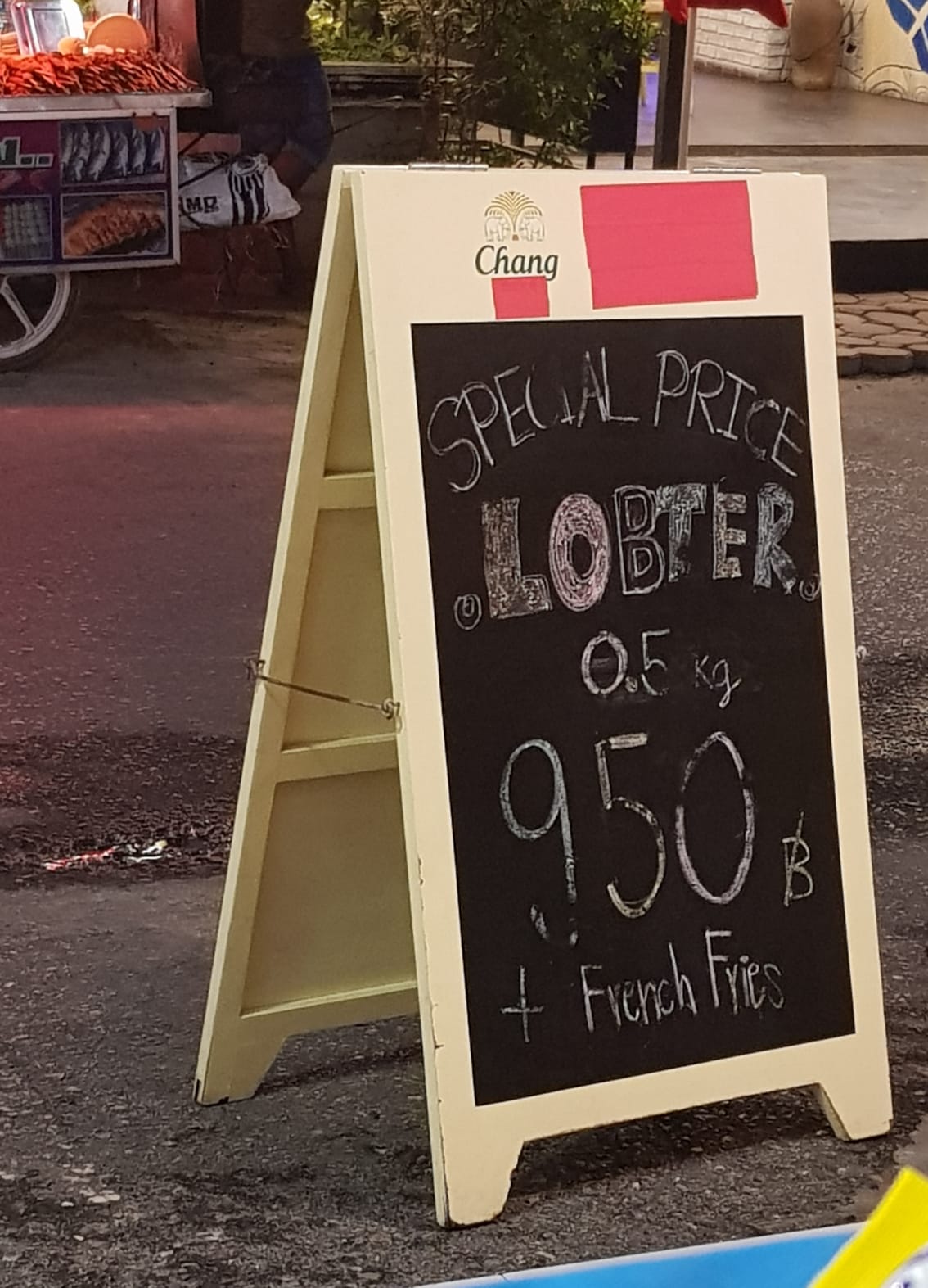 Andy’s favourite Man Dish is of course Fried Cabbage Fire!The best way to serve the French!And today’s fish is…..cappuccino!Good to know!I wish I’d asked Rahul what exactly ‘Body Necessaries’ are?!We’ve found the only legit massage parlour in Thailand!