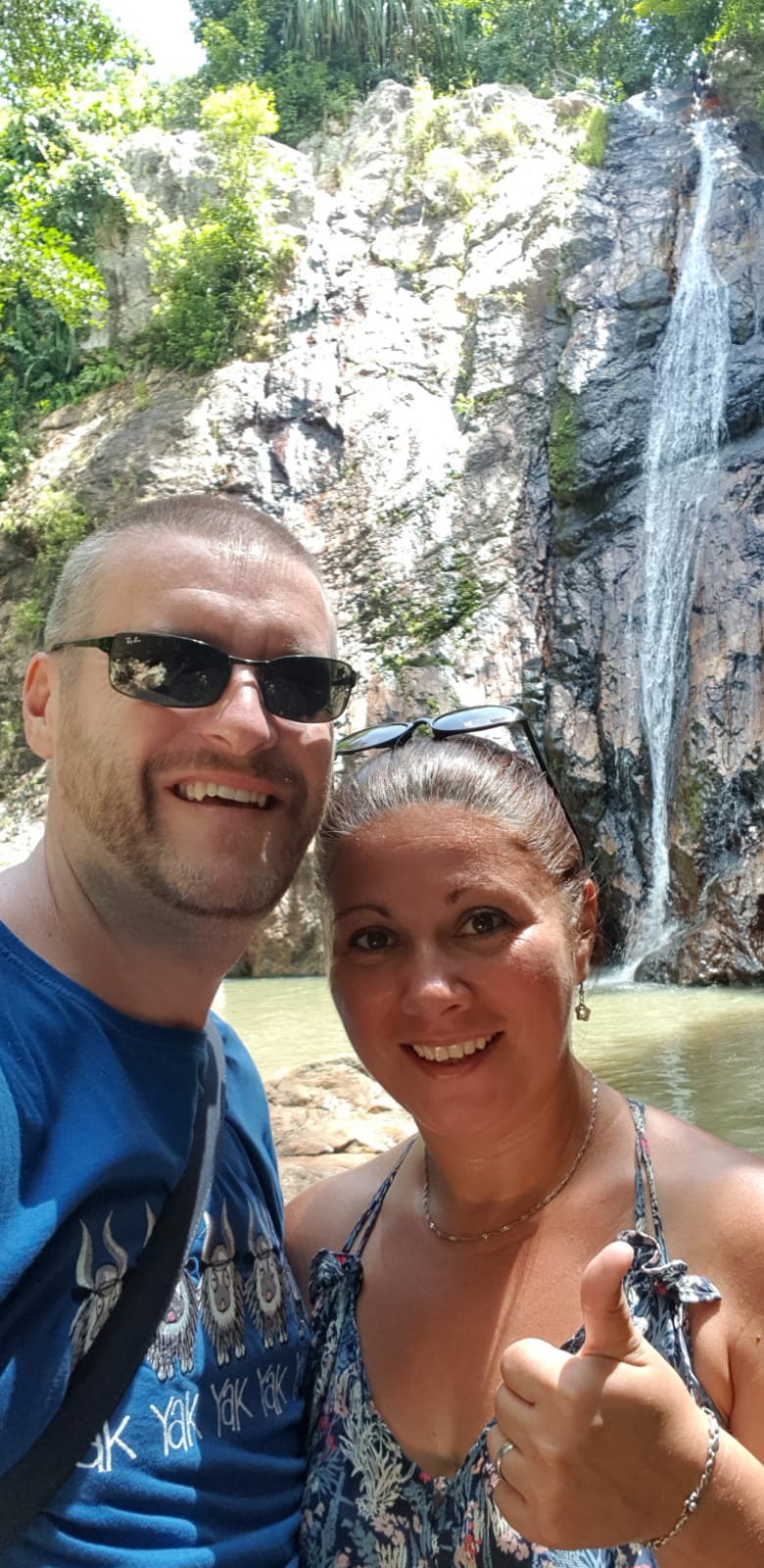On the map we’d noticed lots of symbols for viewpoints dotted all over the island, but there seemed to be a high concentration around Namuang Waterfall, so that was to be our next destination. We jumped on the bike and headed up the mountains. At one point the road was incredibly steep and I thought we weren’t going to make it, but the old Honda didn’t let us down even though we were down to walking pace. It really did make us laugh so much that I could hardly keep the bike balanced!