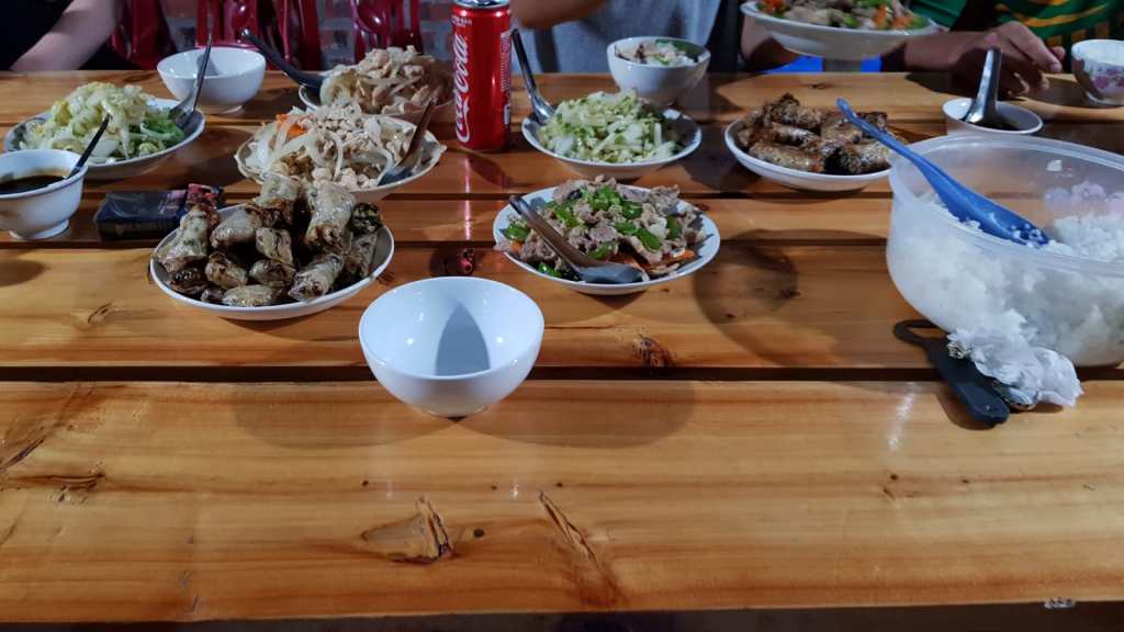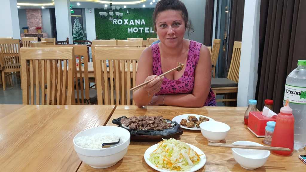 We said goodbye to the rest of the group back the hotel as we were the only ones who’d booked the longer trip with an extra day. We had an amazing dinner that night of sizzling beef with rice, spring rolls and cabbage salad. Very tasty indeed.