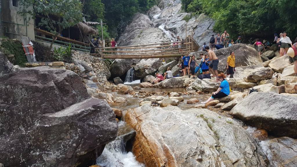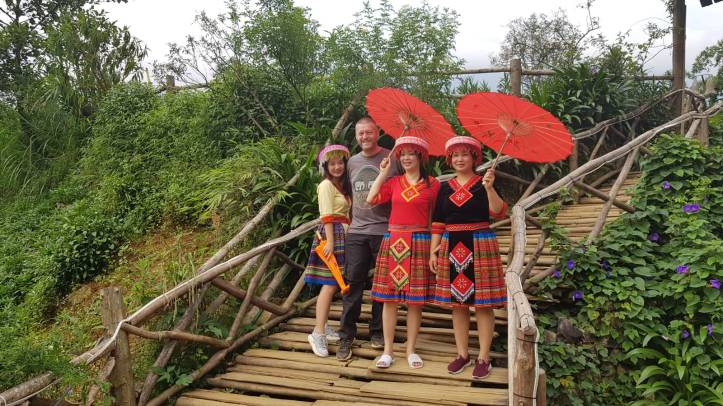 After marvelling at the beautiful, if somewhat artificially created village, waterfalls and witnessing some traditional Vietnamese dancing, our guide gathered us up ready for the walk back…….