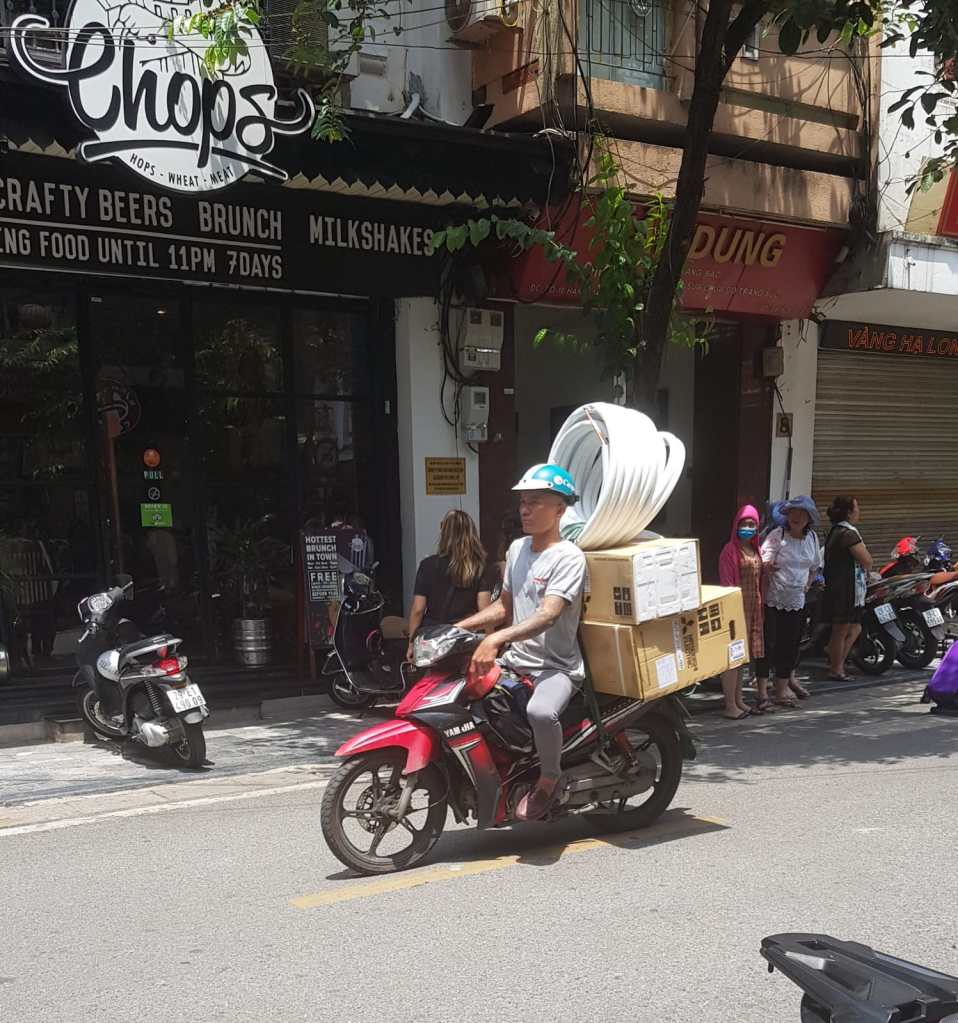 For instance, how many boxes do you think can be carried on a scooter? One? Two?