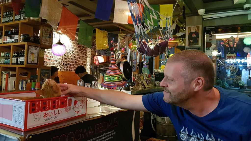 On our last evening in Seoul we had some Korean Won burning a hole in our pockets. What better place to spend it than a pub. As luck would have it we found a lovely craft beer pub called Walkabout on the same street as our hostel. It was a great little place selling a wide variety of lovely beers and Seda even found a cider! They had their own 3 cats as well, which felt like being back in the cat cafe again!