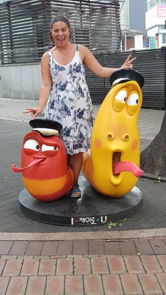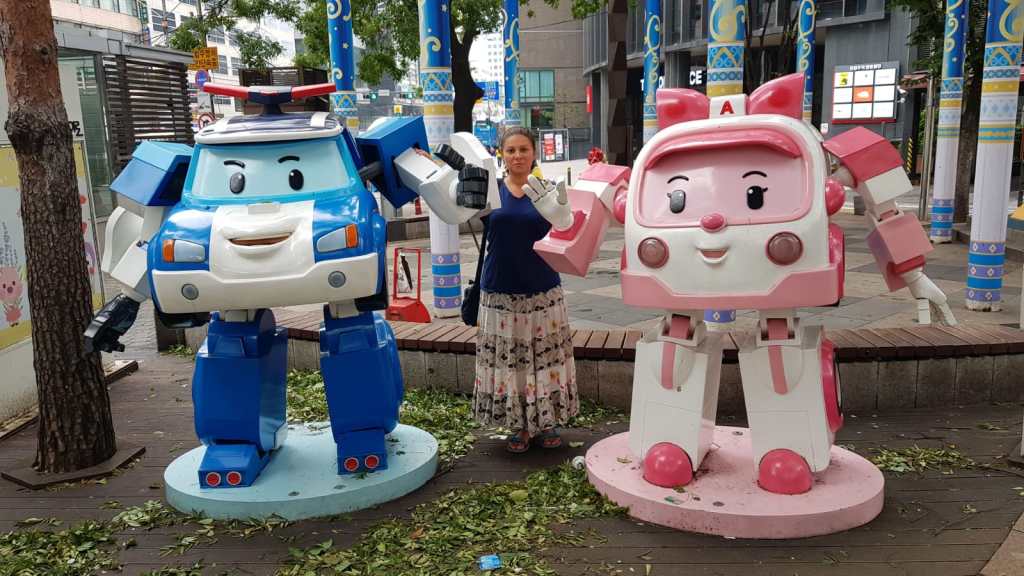 We moved hostel for the second part of our stay in Seoul, and found a place not too far away. When we arrived there were loads of cartoon characters dotted around the place which we couldn’t work out. After a little research we found out that our hostel was on the road where the Korean animation main area is housed, and its unofficially known as Cartoon Street. So, I spent the next 2 days taking pictures of Seda with various characters!