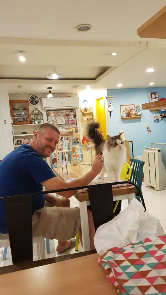 Andy said that it was a really cool experience sitting in a cafe, drinking your coffee and stroking cats! Hmmm…I’m saying nothing!