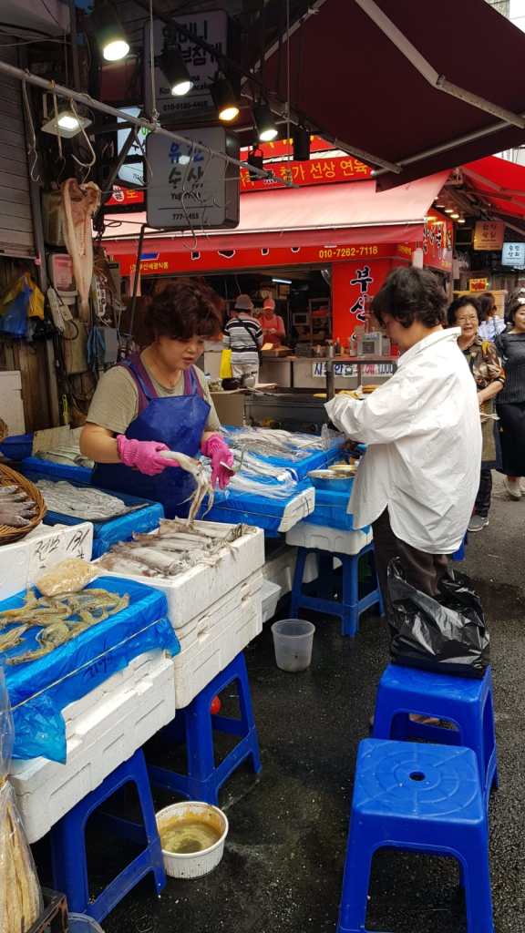 The first day we arrived we took a walk and stumbled upon Namdaemun market. We didn’t want to venture too far as we were pretty tired from our overnight flight but after we saw so many wonderfully colourful and interesting things in the market it invigorated us. I dare you to stay sleepy after standing by the busy “pigs feet” stall!