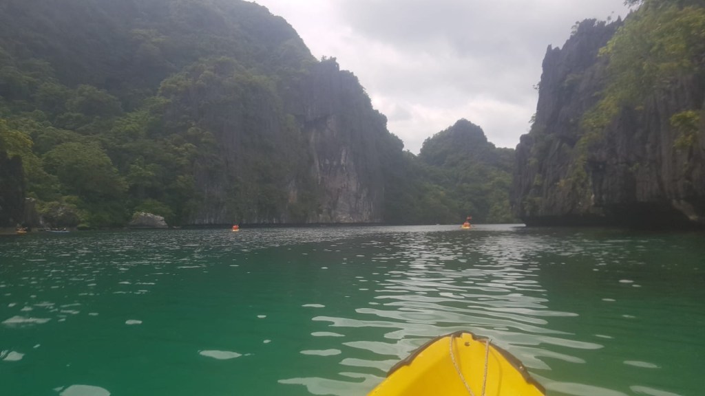 Andy: When we arrived at Big Lagoon the crew started unloading all the kayaks being stored on the side of the boat. Unfortunately our winning smiles and magnetic personalities weren’t enough to secure a free ride into the lagoon. We still had to hire the kayak for a small fee which we thought rather cheeky.