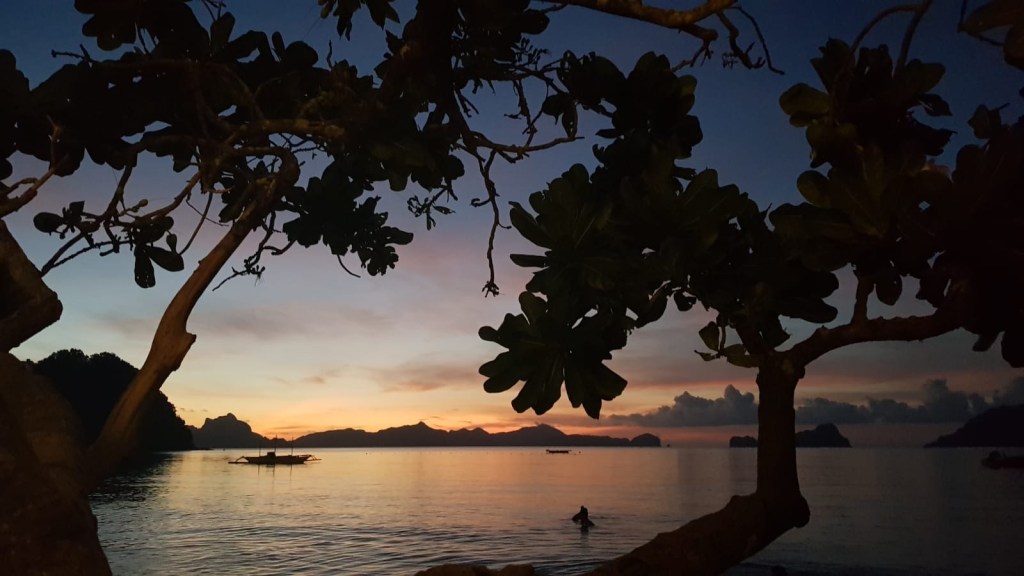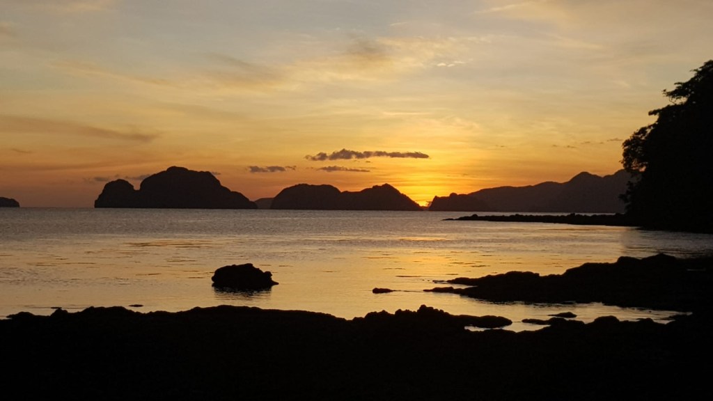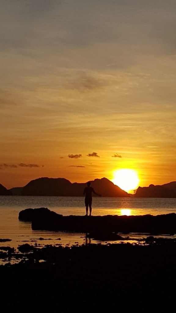 Andy: The sunsets at El Nido were not that spectacular as it sets behind a huge hill/cliff very early on, so one night we went to a different beach which had no such obstacles. Las Cabanas beach was only 10 minutes down the road by tricycle and we got there just in time to get ourselves a good spot. It was really worth going too, as the sunset was spectacular.