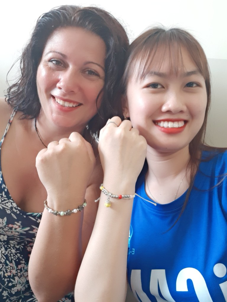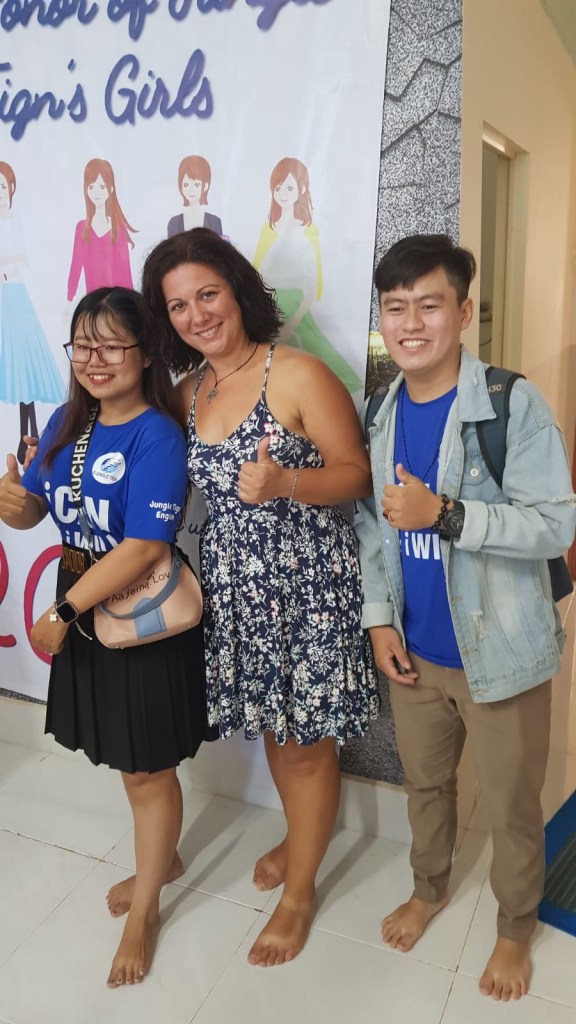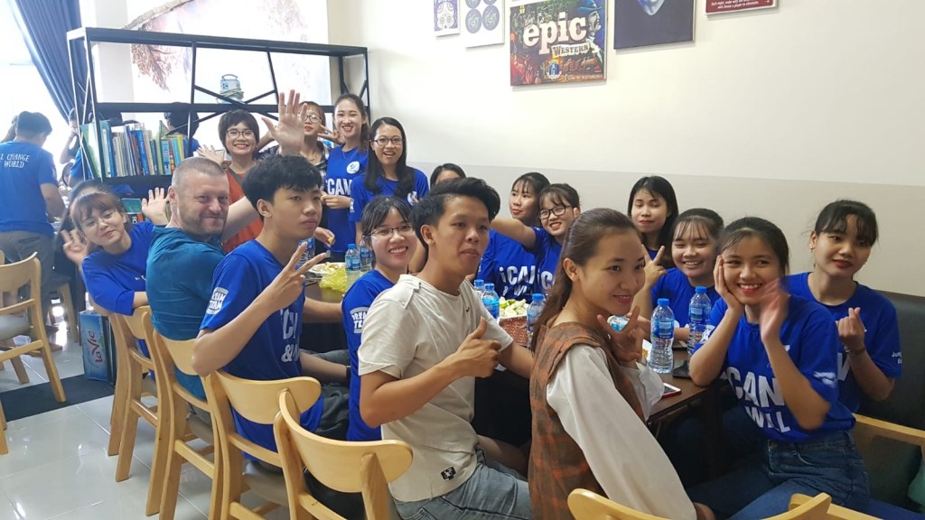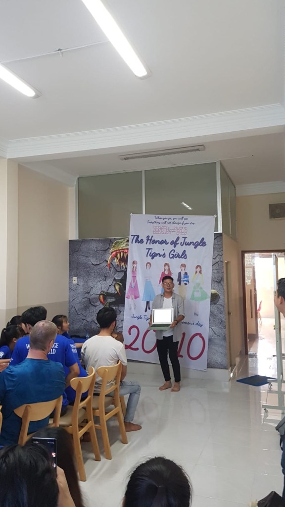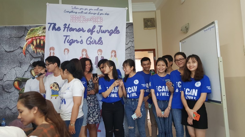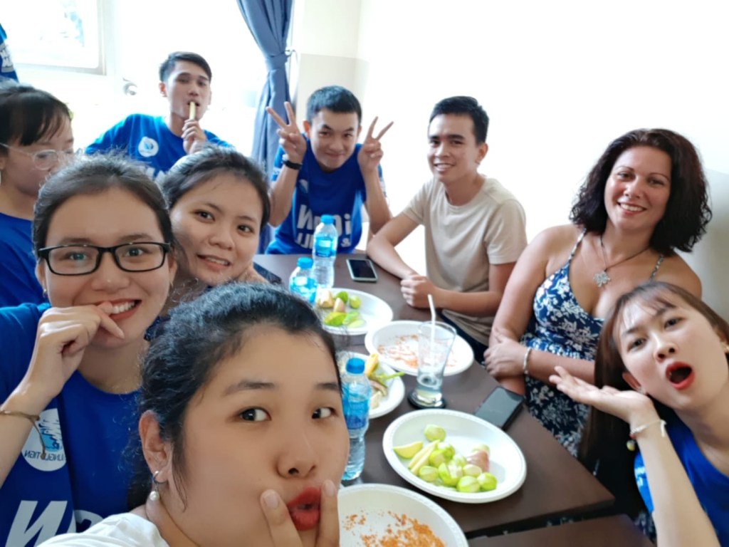 Their course teacher arrived and told us that it was women’s day in Vietnam and we were going to eat fruit, sing songs and be jolly! We thought, “yes we can manage that”. As there were so many of them, Steph (Western teacher), Andy and I, each had a group around 12-15 learners.