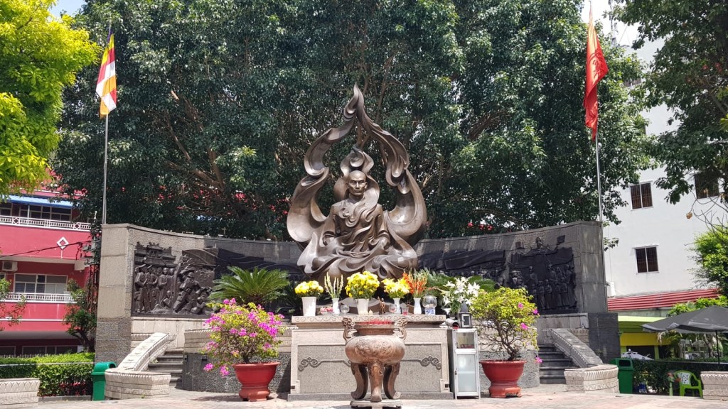 Our first stop on our sightseeing day was at the statue of the Burning Monk. Thich Quang Duc was a Vietnamese Mahayana Buddhist monk who burned himself to death at a busy Saigon road intersection on 11 June 1963. Thich Quang Duc was protesting against the treatment of Buddhists and gave his life in flames in a total state of meditation. I was impressed with Andy’s pre-existing knowledge which apparently was gained when he saw the picture of the Burning Monk on a Rage Against the Machine album cover back in 1992. Although the circumstances surrounding this event are extremely sad and tragic, the monument depicts the story beautifully.