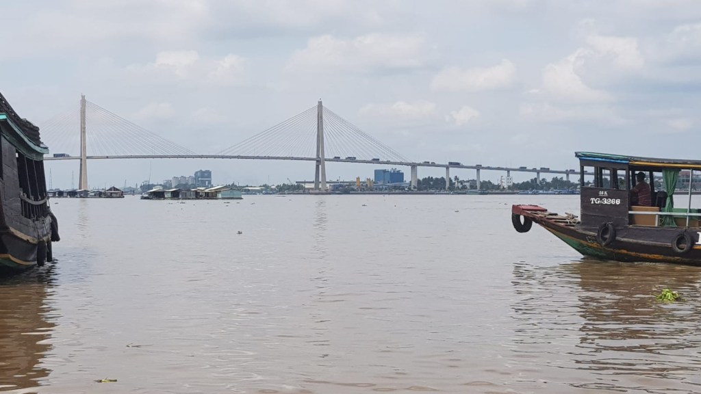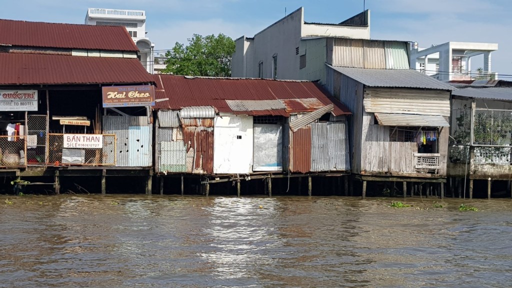 The Mekong riverside was full of shabby metal panels erected to make a house for people on the banks. Our guide Linh explained to us that they were prone to flood damage and had been illegally built but the government was simply not able to control and remove them all now. They didn’t even look very strong on their stilts, and it looked like they’d topple over any moment!