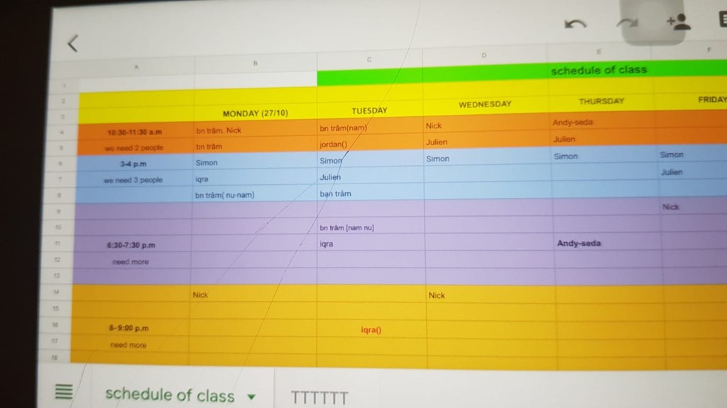 We were greeted with around 30 scooters parked at the entrance and about 80 pairs of shoes. Why 80? Well, because this is a tall narrow apartment with a dorm room and classroom on each floor, and a total of about 5 floors. Anh showed us the kitchen and the 10 people dorm room we’d sleep in. A lot of the residents of this terrible dorm room had already expanded their territory by keeping their junk on the top bunk and sleeping on the bottom one. Some went sideways and chose to exhibit their junk in a neighbouring bottom bunk. We picked the only two available top bunks -this seems to be our destiny- and left our bags on the side since there were no lockers or storage to keep them.