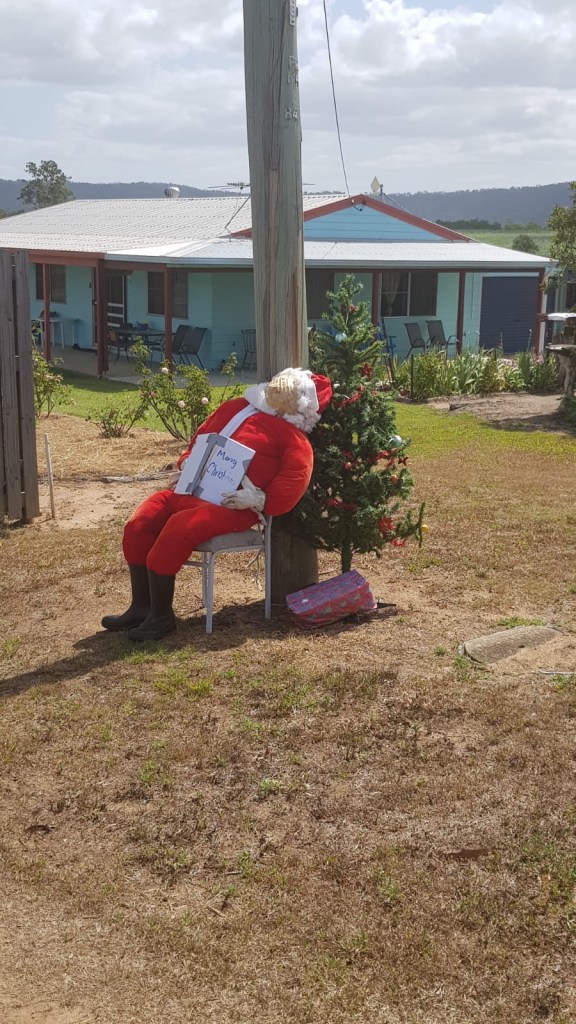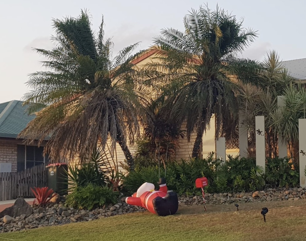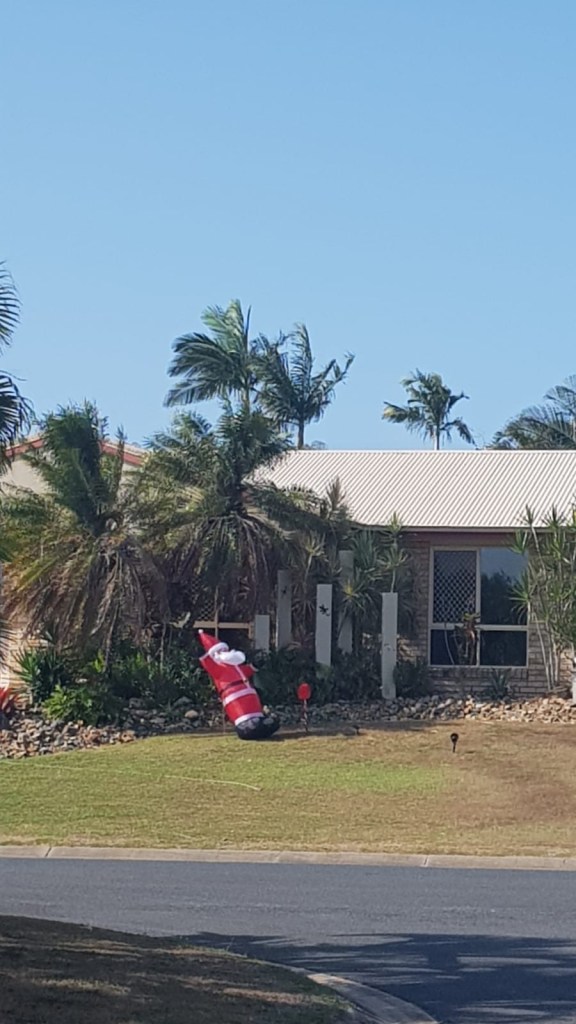 We see some funny reminders of Christmas on the roadsides baking under the sun all day.