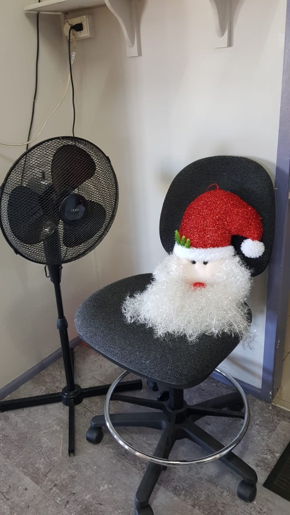 Well at least Santa doesn’t need to be cooled off with a fan in the UK!