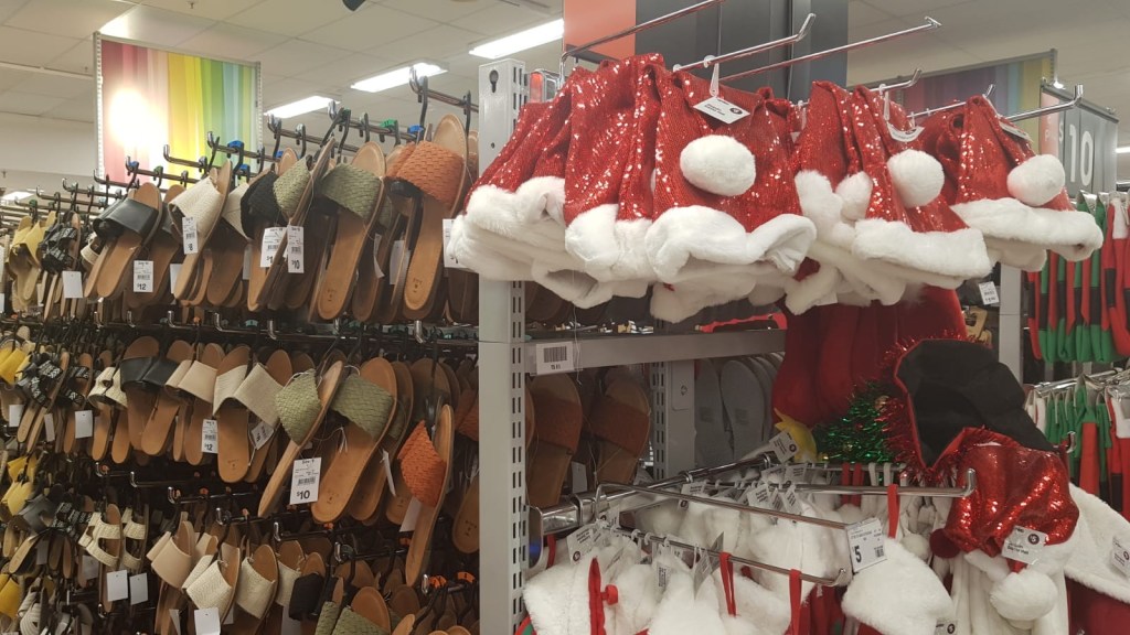 When it comes to Christmas shopping though, you have choices that are miles different than the UK. Beach towels on Christmas sale? Miniature snowy pine trees next to flip flops?