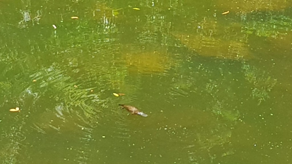 Andy: We moved to another spot further down the river where we weren’t disappointed this time, and had a good look at a playful platypus. They are really cute! Also, there were some huge cockatoos in the trees making one hell of a noise as the platypus happily swam around diving for food. I guess they don’t mind some noises!