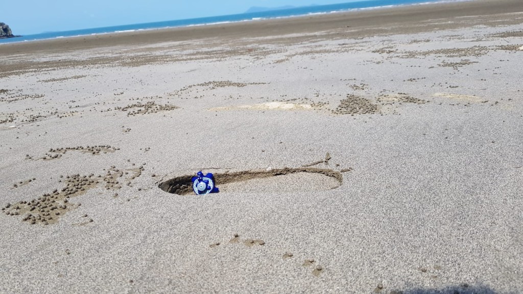 At the time the tide was out and sand was very soft! So soft that way back at the beach, this is how much your feet would sink if you attempted to walk on it. Andy insisted that i go further and watched with great amusement as I sank!