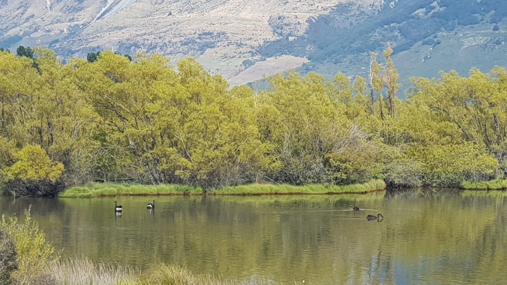 In the morning before leaving the area, we went to Glenorchy Lagoon Walkway to see some more amazing scenery and some black swans. They look a bit weird I have to admit but their red beak is rather cute.
