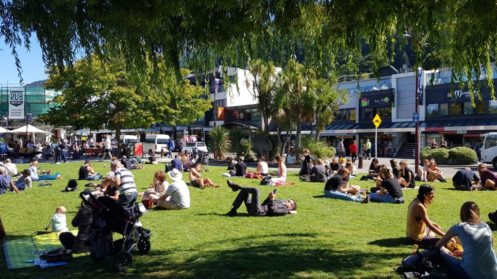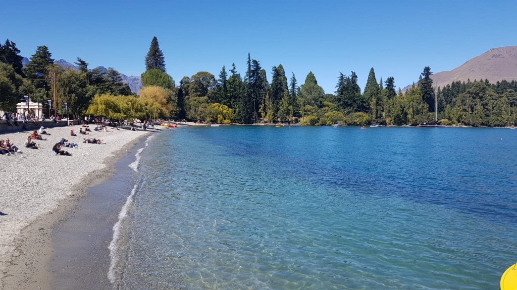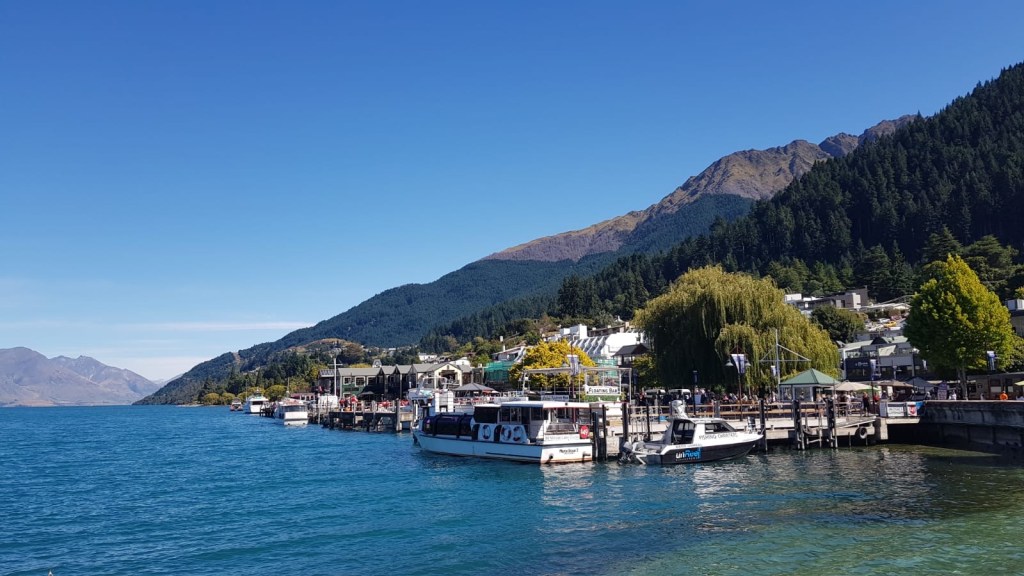 I just sat there and immediately ruined the beauty by trying to connect to our travel sim card network provider’s free town wifi. After a while, the band finished playing and my hands started shaking from wifi-less-ness, so I got up and walked away! Quickly I found myself a nice place with wifi and a lunch pizza offer and sat myself down in comfy chairs there. Later, much later, I went to roam around the town. There’s a lovely feel everywhere in Queenstown, just a happy place. If my fisherman didn’t call to meet, I probably could be found dancing on the beach barefoot with flowers in my hair.