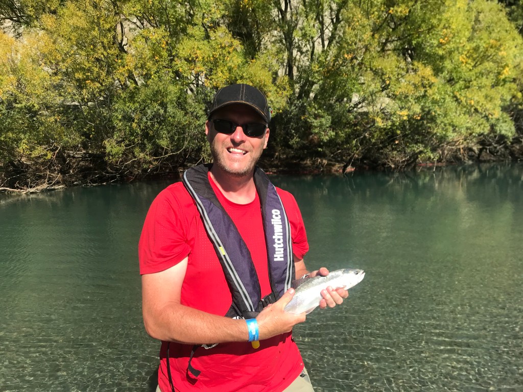 Andy: After my disastrous fishing trip in northern Queensland, AUS, I thought I’d try and redeem myself here in NZ by targeting a more familiar fish, albeit with an unfamiliar method. I regularly fly fish for trout back in England, but this would be spinning with plastic lures. I was looking forward to it though, and it was a lovely day which was a bonus.